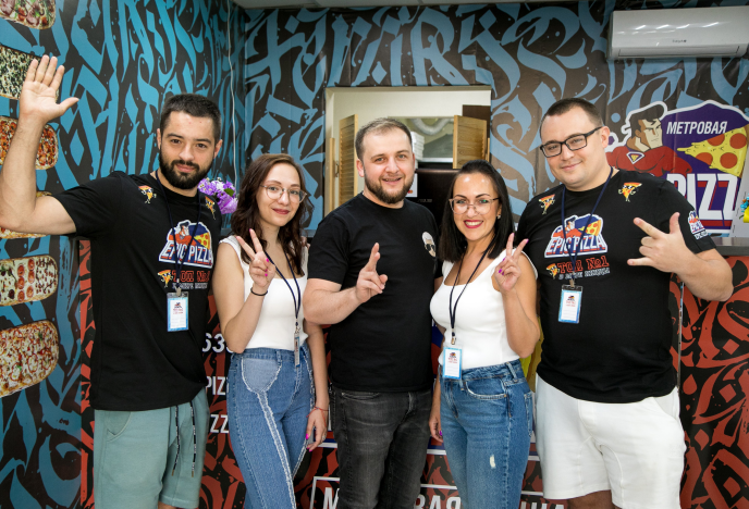 В смену 3 человека - пиццемейкер, ассистент и администратор.